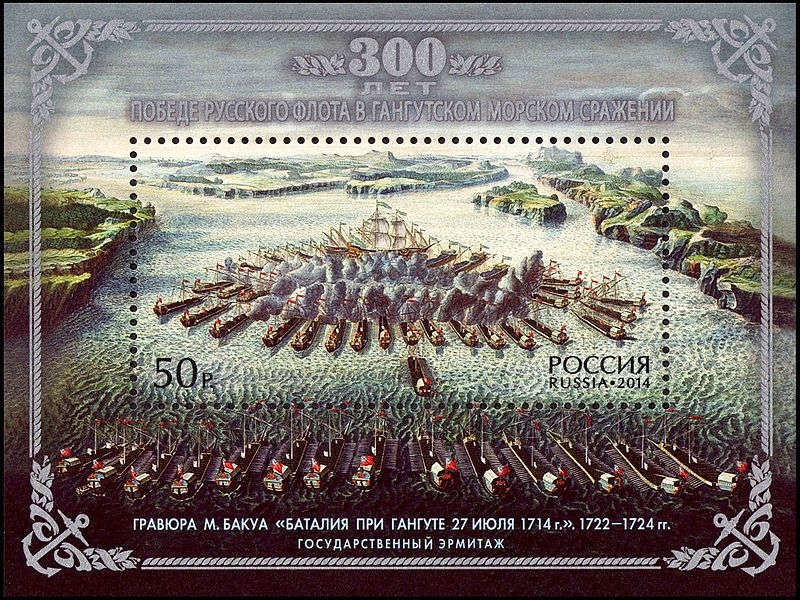 Морское сражение у мыса Гангут9 августа – День первой в истории морской победы русского флота под командованием Петра Первого над шведами у мыса Гангут. Во время Северной войны 1700–1721 годов вблизи мыса Гангут авангард русского галерного флота под командованием Петра Первого разгромили шведскую эскадру контр-адмирала Н. Эреншельда и захватил все 10 вражеских кораблей, одержав первую в истории русского флота крупную морскую победу. Следует отметить, что молодой российский флот располагал мощным десантом в 13,5 тысячи отборной пехоты. Именно тогда было положено начало русской морской пехоте. Великая Северная войнаК весне 1714 года южная и почти вся центральная части Финляндии были заняты русскими войсками. Чтобы окончательно решить вопрос о выходе России к Балтийскому морю, которое контролировалось шведами, требовалось нанести поражение шведскому флоту. В конце июня 1714 года русский гребной флот (99 галер, скампавей и вспомогательных судов с 15-тысячным десантом) под командованием генерал-адмирала графа Фёдора Матвеевича Апраксина сосредоточился у восточного побережья Гангута (в бухте Тверминне) с целью высадить войска для усиления русского гарнизона в Або (100 км северо-западнее мыса Гангут). Путь русскому флоту преградил шведский флот (15 линейных кораблей, 3 фрегата, 2 бомбардирских корабля и 9 галер) под командованием Густава Ваттранга. Пётр I (шаутбенахт Пётр Михайлов) применил тактический манёвр. Он решил часть своих галер перебросить в район севернее Гангута через перешеек этого полуострова длиной 2,5 километра. Для выполнения замысла он приказал построить переволоку (деревянный настил). Узнав об этом, Ваттранг направил к северному побережью полуострова отряд кораблей (18-пушечный прам "Элефант", 6 галер, 3 шхербота). Возглавил отряд контр-адмирал Эреншёльд. Другой отряд (8 линейных кораблей и 2 бомбардирских корабля) под началом вице-адмирала Лиллье он решил использовать для нанесения удара по главным силам русского флота. Пётр ожидал таких действий. Он решил воспользоваться разделением сил противника. Ему благоприятствовала погода. Утром 26 июля (6 августа) стояло безветрие, из-за чего шведские парусные корабли утратили манёвренность. Авангард русского флота (20 кораблей) под командованием командора Матвея Христофоровича Змаевича начал прорыв, обходя шведские корабли и оставаясь вне пределов досягаемости их огня. Вслед за ним осуществил прорыв другой отряд (15 кораблей). Впрочем, надобность в переволоке отпала. Отряд Змаевича заблокировал отряд Эреншельда у острова Лаккиссер. Полагая, что и другие отряды русских кораблей будут продолжать прорыв тем же путём, Ваттранг отозвал отряд Лиллье, освободив, таким образом, прибрежный фарватер. Воспользовавшись этим, Апраксин с главными силами гребного флота прорвался по прибрежному фарватеру к своему авангарду. В 14 часов 27 июля (7 августа) русский авангард в составе 23 кораблей атаковал отряд Эреншельда, построившего свои корабли по вогнутой линии, оба фланга которой упирались в острова. Две первые атаки шведам удалось отбить огнём корабельных орудий. Третья атака была предпринята против фланговых кораблей шведского отряда, что не позволило противнику использовать преимущество в артиллерии. Вскоре они были взяты на абордаж и захвачены. Пётр I лично участвовал в абордажной атаке, по