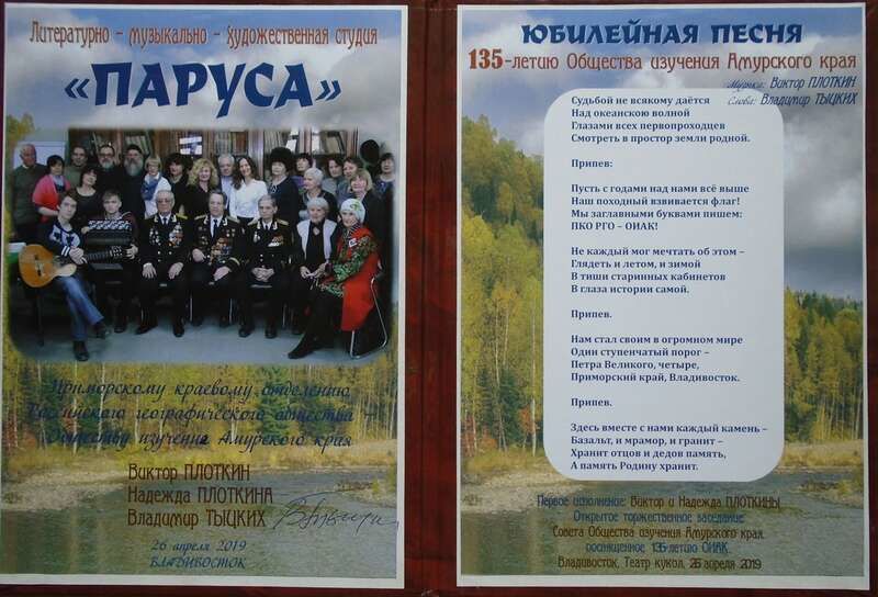 Литературные «Паруса» ПриморьяОчередной сбор Литературно-музыкально-художественной студии "Паруса" состоялся в период праздничных мероприятий, посвящённых 135-летию Общества изучения Амурского края. Забегая вперёд, скажем, что студийцы приняли активное участие в торжествах, прошедших в Приморском краевом театре кукол. Заметим, в числе студийцев есть и члены Приморского регионального отделения Союза машиностроителей России. Студийцы, гордые своей принадлежностью к ОИАК, продолжили празднование юбилея уникального, первого на востоке России культурно-просветительского общества. "Паруса" творчески готовились к знаменательной дате. Подарком любимой организации стала картина активиста студии, члена Союза художников России, Почётного члена Российской академии художеств, академика-секретаря Китайско-Российской академии изобразительных искусств Владимира Листрового. Сам Владимир Сергеевич находится на международном пленере, его живописное полотно вручила председателю ПКО РГО – ОИАК Алексею Буякову давний друг "Парусов", известная приморская журналистка и общественный деятель Наталья Козырева. Настоящий сюрприз приготовили для участников торжественного юбилейного собрания композитор Виктор Плоткин и поэт Владимир Тыцких. Они написали песню, посвященную Приморскому краевому отделению РГО – ОИАК, которая была исполнена с праздничной сцены дуэтом в составе Виктора и Надежды Плоткиных. На заседании Студии по поручению председателя ОИАК Алексея Буякова были вручены награды активистам "Парусов". Медалью "Владимир Клавдиевич Арсеньев" отмечена многолетняя работа в Русском географическом обществе библиофила, краеведа-эколога Ольги Борисовской. Фотографы, видеохроникеры студии Елена и Ирина Подосинниковы удостоены Почетной грамоты и Благодарственного письма ПКО РГО – ОИАК. Им принадлежат десятки видеосюжетов, сотни и сотни фотографий, опубликованных на интернет-сайтах России, вошедших в книги, журналы и хронографы, изданные в рамках благотворительной издательской программы ОИАК "Народная книга", составляющих фото— и видеофонд "Парусов". Кроме того, студийцы обсудили новую книгу кандидата исторических наук, прозаика и публициста Рима Самигулина "Кесарево сечение". Вышедшая тиражом 100 экземпляров, книга о жизни таёжного посёлка вызвала живой интерес, стимулировала эмоциональный разговор о "сладкой" литературной каторге, о ткани художественного произведения, о законах построения романа и повести, о лирике и героике, о тайнах образности и ещё много о чём. Главное, что всем понравилось. Это бывает тогда, когда перед нами действительно литературное произведение, которое можно, если есть желание и воля автора, превращать в произведение более высокохудожественное. Участниками дискуссии стали читатели и писатели: профессора МГУ им. Г. И. Невельского В. Гаманов и А. Бурундуков, краевед О. Борисовская, профессор ТОВВМУ им. С. О. Макарова, поэт, доктор философских наук В. Кулешов, член Союза российских писателей Э. Кочеткова, член Союза писателей России В. Тыцких. «Прогресс Приморья», № 20 (533) от 31.05.2019 г. |