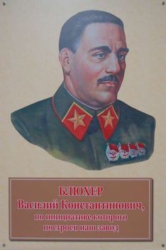 Первый кавалер двух советских орденовКогда вы попадаете в Музей истории славного авиационного завода "Прогресс", лидирующего предприятия Приморского регионального отделения Союза машиностроителей России, то невольно бросаете взгляд на большой цветной портрет. На нём изображён маршал Советского Союза В. К. Блюхер, по инициативе которого и построен завод. В числе людей, стоявших у истоков создания авиационного предприятия в селе Семёновка, он один из первых. Об этом сообщает надпись под портретом: "Блюхер Василий Константинович, по инициативе которого построен наш завод". Именно так: легендарный советский полководец предложил заложить авиационный завод на Дальнем Востоке. И к его мнению прислушались, потому что он хорошо знал Приморье, участвуя в разгроме интервентов и изгнании их с нашей территории. К сожалению, В. К. Блюхер разделил судьбу многих командармов, попавших под репрессивный каток. Он скончался в лефортовских застенках. Весной 1956 года В. К. Блюхер был реабилитирован. Имя В. К. Блюхера навсегда вписано в историю нашей Родины, её героических Вооружённых сил – от создания Красной Армии, у истоков которой он стоял, до её модернизации накануне Великой Отечественной войны. Первая мировая и две революцииТрудный, но славный жизненный путь прошёл Василий Блюхер, простой крестьянский паренёк из российской деревни Барщинка Ярославской губернии. Родился он 19 ноября (1 декабря) 1890 года. Трудиться начал в раннем возрасте, поступив слесарем на Мытищинский вагоностроительный завод. Сразу попал в круговорот революционных событий. В 1910 году за призыв рабочих к забастовке был арестован и посажен в тюрьму. С началом Первой мировой войны призвался в армию и отправился на фронт. Служил рядовым. Проявил беспримерную храбрость и мужество, но получил тяжелейшее ранение и был демобилизован из армии. Вступил в партию большевиков, и после буржуазной Февральской революции 1917 года по решению партии вновь призывается в армию, вступив добровольцем в 102-й запасной пехотный полк в Самаре. Там избирается в полковой комитет и городской Совет солдатских депутатов. К началу Великой Октябрьской социалистической революции 1917 года В. К. Блюхер – член Самарского Военно-революционного комитета. В конце ноября 1917 года его направляют в Челябинск комиссаром красногвардейского отряда, который участвует в боях с казачьим атаманом Дутовым. Орден Красного Знамени № 1Под командованием В. К. Блюхера большевиками было одержано несколько ярких побед. Однако чехословацкий мятеж в мае 1918 года резко ухудшил обстановку на Восточном фронте. Оренбург переходит из рук в руки. Неожиданно красногвардейские отряды оказались в плотном кольце. Двадцативосьмилетний Блюхер возглавил красноармейские и красногвардейские отряды и успешно совершает с ними 1500-километровый рейд в тыл врага. После ряда ожесточённых боёв с превосходящими силами Белой армии выводит свои войска из района Оренбурга в район Кунгура и соединяется с 3-й армией. За этот подвиг В. К. Блюхер первым в Советской Республике получил орден Красного Знамени, только что утверждённый советским правительством. Части сводного Уральского отряда, которым он командовал, были реорганизованы и влились в состав 4-й Уральской дивизии, вскоре переименованной в 30-ю стрелковую. Начдивом назначили В. К. Блюхера. В конце ле