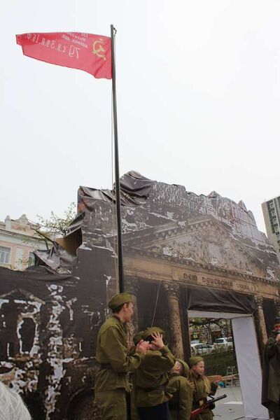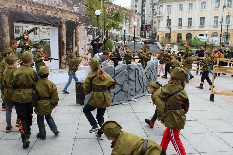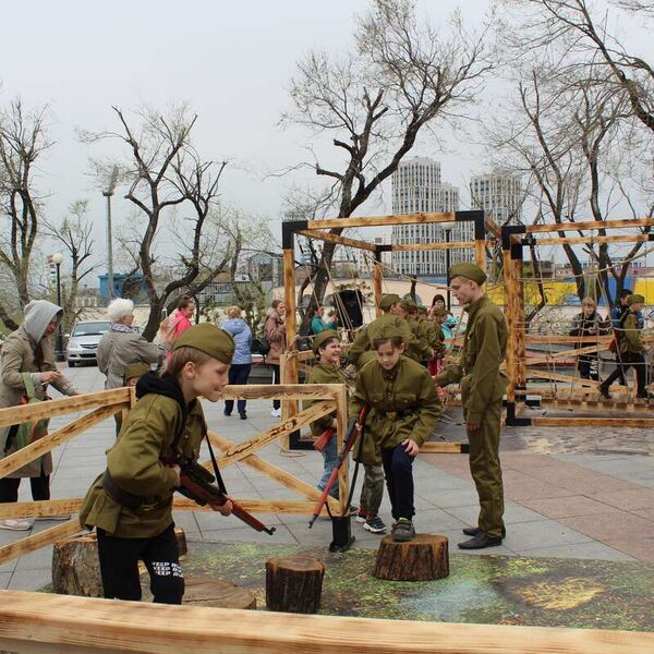 Водрузили флаг над поверженным рейхстагомВ период празднования Дня Победы на Спортивной набережной города Владивостока прошли мероприятия, в которых могли принять участие не только взрослые, но и дети. Семья машиностроителей Сафоновых выбрала аттракцион, который включал в себя преодоление болотистой местности, надолбов и противотанковых ежей. Дети Наташа и Коля получили из рук организаторов аттракциона обмундирование, автомат и винтовку и влились в группу красноармейцев, атакующих вражеские позиции, защищающие рейхстаг. С криками "ура" ребята бросились в атаку и завладели позицией, намеченной командованием. Затем все участники построились у стен поверженного рейхстага и получили заслуженные медали на георгиевской ленте. Над рейхстагом было водружёно красное знамя победы. Вот что сказала член Союза машиностроителей России Валентина Сафонова: "Понятно, что атака рейхстага – это всего лишь игра, но игра нужная для понимания детьми важности и значимости победы нашего народа не только в Великой Отечественной, но и во Второй мировой войне. В нашей семье два деда не вернулись с полей сражений. Но их фото мы бережно храним, и дети знают о подвигах своих предков немало. Несмотря на то что до Берлина деды не дошли – они погибли раньше, наши дети через игру узнали о логове фашистского рейха – рейхстаге, который был повержен весной 1945 года". Помимо аттракционов, посвящённых Великой Победе, горожане имели возможность сфотографироваться на фоне баннеров, посвящённых эпизодам той войны, сняться на фоне самолёта и легендарного танка Т‑34, приобрести красный флаг Победы, сувенирную продукцию, которая предлагалась всем, кто приходил в эти праздничные дни на Спортивную набережную. «Прогресс Приморья», № 18 (624) от 21.05.2021 г. |