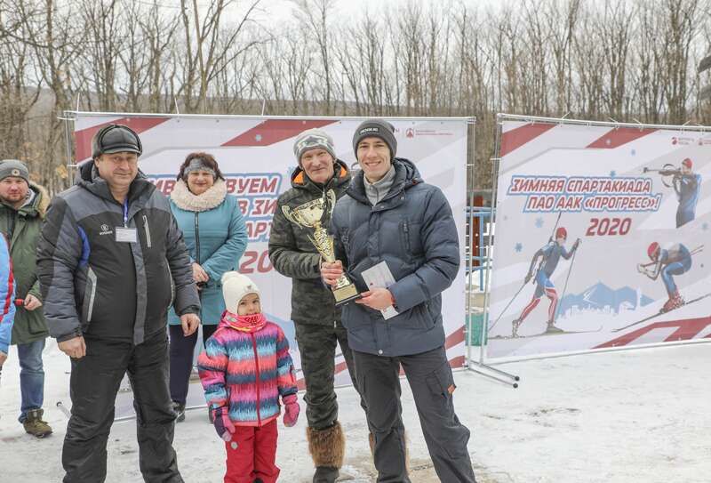 В Арсеньеве состоялась традиционная зимняя спартакиада работников ААК «Прогресс»В минувшую субботу в Арсеньеве на территории оздоровительного центра "Салют" состоялась традиционная зимняя спартакиада работников Арсеньевской авиационной компании "Прогресс" им. Н. И. Сазыкина. В соревнованиях приняли участие более пятисот представителей различных структурных подразделений предприятия в составе девяти команд, в числе которых были как постоянные участники заводских спартакиад, так и новички. Торжественная церемония открытия зимней спартакиады по традиции началась с парада участников. Возглавила парад команда службы подготовки производства "Исток" – победитель зимней спартакиады 2018 года, за ней следовали серебряный и бронзовый призеры прошлых соревнований – команда ПКМ и РТИ "Полимер" и команда службы главного металлурга "Металлург". Следом на площадку поднялись полные энергии и рвущиеся в бой команда механосборочного производства "Механик", команда сборочного производства "Аллигатор", команда цеха экспедиции "Экспедиция", команда отдела главного технолога "ОГТ", команда службы материально-технического снабжения "СКАТ" и дебютанты этого года – команда управления кадровой политики и развития персонала "Комета". Почетное право совершить подъем государственного флага Российской Федерации, флагов Союза машиностроителей России и авиационной компании "Прогресс" было предоставлено капитану команды-победительницы зимней спартакиады‑2018 "Исток" – начальнику производства заготовительно-штамповочной и объемной оснастки центра подготовки производства Николаю Николаевичу Ступаку. И вот звучат заветные слова из уст управляющего директора ААК "Прогресс", председателя Приморского регионального отделения Союза машиностроителей России Юрия Петровича Денисенко: "Традиционная зимняя спартакиада Арсеньевской авиационной компании "Прогресс" объявляется открытой!" "Уважаемые участники соревнований, судейская коллегия, гости, болельщики, дорогие друзья! Я вас поздравляю с нашим традиционным зимним праздником. Я очень рад видеть всех вас весёлыми, радостными, ведущими активный образ жизни, что является залогом здоровья и развития. Смотря на вас, я понимаю, что у нашего предприятия – большое будущее. Желаю всем вам спортивных достижений не только в лыжах, но и в шашлыках!" – обратился к присутствующим Юрий Петрович Денисенко. "Желаю вам набраться здоровья, хорошего настроения, а в спорте пусть победит сильнейший!" – заключил председатель Первичной профсоюзной общественной организации ААК "Прогресс" Андрей Юрьевич Никулин. После представления главной судейской коллегии команды, как всегда с творческим подходом к делу, отрапортовали о готовности к спартакиаде своими броскими лозунгами и бойкими речёвками собственного сочинения и с этим задорным настроением ринулись в бой. Далее на протяжении пяти часов спортсмены упорно боролись за победу в таких видах спорта, как мини-футбол на снегу, лыжные гонки, биатлон и перетягивание каната, а также в забегах в рамках соревнований спортивных семей, весёлых конкурсах "Точно в цель" и "Бросок валенка" и, конечно, в самом любимом авиастроителями конкурсе шашлыков. Нельзя не отметить, что в этом году праздник прошёл особенно ярко. Было видно, как люди соскучились по данному мероприятию, ко