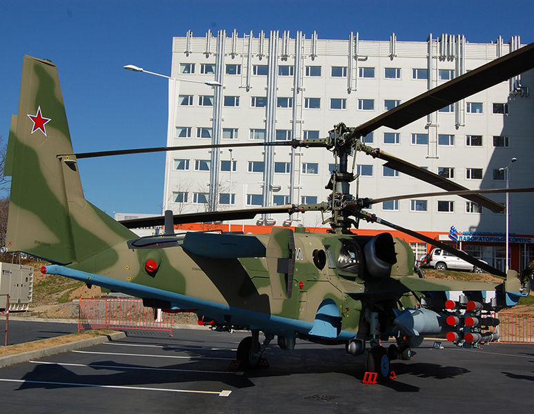 Вертолёт Ка-52 «Аллигатор» — на площадке Инженерной школы ДВФУУдарный боевой вертолёт Ка-52 "Аллигатор" членам Международного экспертного совета представил Юрий Петрович Денисенко, управляющий директор "Арсеньевской авиационной компании "Прогресс" им. Н.И. Сазыкина", председатель Приморского регионального отделения Союза машиностроителей России — одного из важнейших и наиболее современных производственных активов российского вертолётостроительного холдинга "Вертолёты России". Это знаковое событие состоялось на открытой площадке вблизи лабораторного корпуса ДВФУ. В состав Совета по повышению конкурентоспособности российских университетов среди ведущих мировых научно-образовательных центров под председательством министра образования и науки Российской Федерации Дмитрия Ливанова вошли иностранные и российские представители научно-академического сообщества, государственные деятели, признанные мировые эксперты и исследователи проблем высшего образования. Весь день молодые специалисты авиационной компании "Прогресс", успешно совмещающие работу на производстве с обучением на кафедре самолёто— и вертолётостроения в Арсеньевском филиале ДВФУ, рассказывали студентам о представленном боевом вертолёте, перспективах и выгодах работы на предприятии. Ребята с большим интересом слушали выступающих и задавали многочисленные вопросы, в большинстве случаев связанные с лётными характеристиками вертолёта Ка-52 и его существенными отличиями от модификации Ка-52К. В конце дня управляющий директор Арсеньевской авиационной компании "Прогресс" Юрий Петрович Денисенко представил боевую машину членам Международного экспертного совета в сопровождении ректора ДВФУ Сергея Иванца с целью демонстрации практических результатов взаимовыгодного сотрудничества предприятия и университета в области целевой подготовки квалифицированных кадров и дополнительного профессионального обучения сотрудников авиакомпании. Именно благодаря многолетней совместной работе с ДВФУ авиакомпания пополняется молодыми высококвалифицированными кадрами, способными участвовать в высокотехнологичном процессе производства современных вертолётов. В рамках презентации Дальневосточного федерального университета — одного из вузов-участников Проекта 5-100, экспертам также продемонстрировали уникальные разработки в сфере робототехники, в том числе интеллектуальный роботизированный комплекс для обработки полимерных композиционных деталей новых средних многоцелевых вертолётов Ка-62, созданный в Инженерной школе ДВФУ по заказу Арсеньевской авиационной компании "Прогресс" в рамках гранта, выигранного по постановлению Правительства РФ № 218 "О мерах государственной поддержки развития кооперации российских вузов и организаций, реализующих комплексные проекты по созданию высокотехнологичного производства". Уникальный роботокомплекс, способный обрабатывать гидроабразивным способом более 250 видов деталей размером до шести метров из 22 типов композитных материалов, до конца текущего года будет установлен на "Прогрессе", что позволит существенно повысить скорость и качество изготовления деталей по сравнению с традиционной резкой. Совет высоко оценил эффективность реализации текущей программы развития ДВФУ, имеющиеся практики в области об