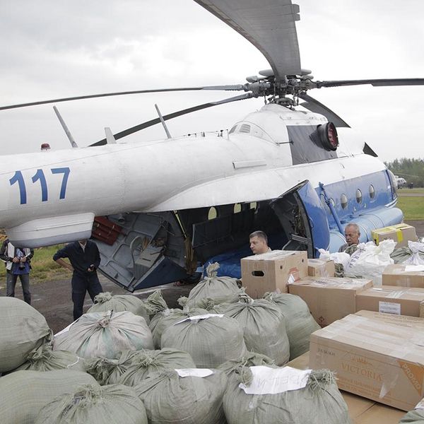 Гуманитарную помощь из Арсеньева доставляют вертолётамиВертолет Ми-8, находящийся в эксплуатации Арсеньевской авиационной компании "Прогресс" им. Н.И. Сазыкина, выполняет работы по перевозке грузов с гуманитарной помощью для пострадавших от тайфуна "Лайонрок", обрушившегося на Приморье, а также осуществляет перевозку людей, оказавшихся в зоне затопления. В минувшие выходные с аэродромной площадки Арсеньевской авиационной компании "Прогресс" заводской экипаж вертолета Ми-8 совершал вылеты в села Чугуевского района: Ясное, Верхняя Бреевка, Березовка, а также на три лесозаготовительные площадки, расположенные на прилегающей к селам территории. Пострадавшим были доставлены медикаменты, одежда, питьевая вода, хлеб, мука, макароны и крупы, консервы, бытовая химия и средства личной гигиены, собранные силами жителей и организаций города Арсеньева, общей массой более 4 тонн. За два дня вертолетом Ми-8 были транспортированы более 60 человек, отрезанных от суши, на аэродром "Соколовка", среди которых было двое тяжелобольных. Вертолет предприятия готов к продолжению вылетов для транспортировки людей и грузов на протяжении всей текущей недели. Отметим также, что с аэродромной площадки Арсеньевской авиационной компании "Прогресс" ежедневно совершают вылеты и вертолеты МЧС России Ми-26 и Ми-8 с гуманитарной помощью пострадавшим. «Прогресс Приморья», № 32 (396) от 08.09.2016 г. |