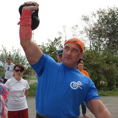 Всё могут силачи!Андрей Каехтин, победитель соревнований по гиревому спорту (8-й раз подряд), команда "Дальприбор": "Я выступаю на соревнованиях по жиму лёжа, по пауэрлифтингу, да ещё много всего. Я раньше единоборствами занимался. На заводе у нас есть силовик. Он меня первый раз в зал привёл в 2009 году и говорит: "Попробуем". Раньше что было: самбо, тяжёлая атлетика, бокс. Вот я боксом и занимался в школе. А примером для меня был мой отец, мастер спорта по тяжёлой атлетике — Владимир Дмитриевич. К сожалению, он в прошлом году ушёл из жизни. Отец, видимо, и сумел передать мне свою любовь к спорту. Сам — настоящий богатырь. Здесь, на Слёте, — мой сын, ему всего три дана осталось до чёрного пояса в киокушинкай карате. Здесь и племянник Владимир, который тяжёлой атлетикой занимается, выступал на соревнованиях по народному жиму, первый разряд уже имеет. Я фрезеровщик, имею среднее техническое образование. Являюсь судьёй Федерации пауэрлифтинга Владивостока. Здесь свои правила, разряды вплоть до мастера спорта. Это моё хобби, мне это интересно. Ко мне часто подходят и спрашивают: "А этот дедушка сколько пожал?" Я говорю: "Этому дедушке 70 лет. 60 раз он пожал, и ты попробуй". Особый талант, считаю, здесь не нужен, у каждого свои плюсы и минусы, нужен характер. Усидчивость должна быть у человека и какая-то мотивация". «Прогресс Приморья», № 35 (399) от 29.09.2016 г. |