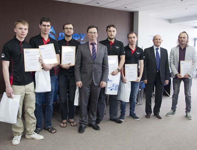 Развитие робототехники — приоритетное направлениеПодводная робототехника — одно из приоритетных направлений развития Дальневосточного федерального университета. В этой области вуз обладает международным авторитетом, который подтверждают успешные выступления студентов и аспирантов на престижных соревнованиях. С 2012 года команда ДВФУ ежегодно становится призером в классе автономных роботов на всемирных турнирах RoboSub и азиатских чемпионатах Singapore AUV Challenge. Исполняющий обязанности ректора Дальневосточного федерального университета Никита Анисимов поздравил команду студентов и аспирантов ДВФУ и Дальневосточного отделения Российской академии наук с победой на чемпионате Азии по подводной робототехнике Singapore AUV Challenge. О ходе чемпионата редакция газеты Приморского регионального отделения Союза машиностроителей России рассказывала на своих страницах. Разработчики подводного беспилотника рассказали на встрече о прошедших соревнованиях и обсудили с руководством вуза развитие робототехники. "Соревнования такого уровня — это очень хорошая оценка знаний и профессиональных навыков, которые вы получаете в университете, — отметил Никита Анисимов. — Уверен, что робототехника как проектная деятельность должна статью частью учебного процесса ДВФУ. Из студентов и аспирантов, которые добиваются успеха на международных соревнованиях, выйдут отличные наставники для новичков. Университет будет создавать все условия, чтобы как можно больше молодежи вовлекалось в робототехнику, ведь конкуренция рождает новые знания". Напомним, Singapore AUV Challenge проводился с 10 по 13 марта в Сингапуре с участием команд технических вузов из России, Китая, Индии, Сингапура, Малайзии, Таиланда, Египта, Пакистана, США и Швеции. Единственный российский беспилотник оказался самым быстрым среди 28 аппаратов: сборная ДВФУ и ДВО РАН признана победителем по скорости прохождения миссии. Эту награду команда из Владивостока разделила с Центром повышения квалификации для инженеров из Пакистана. Подробнее о подводном аппарате Никита Анисимов узнал в бассейне, куда участники команды пригласили его на открытую тренировку. Капитан сборной, аспирант Инженерной школы ДВФУ Максим Спорышев рассказал, что "мозг" 28-килограммового робота размещен в надежном герметичном алюминиевом корпусе, где находится весь блок электроники, два компьютера, платы для обработки поступающих сигналов. Ориентироваться в пространстве аппарату помогают две камеры, а движение под водой обеспечивают мощные двигатели, с помощью которых робот может передвигаться в пяти степенях свободы и даже делать сальто. За безопасность аппарата отвечают контрольно-аварийная система и система борьбы с протечками. "Специально для соревнований в Сингапуре мы уменьшили размеры робота — это уже третья версия аппарата, который мы постоянно модернизируем. Каждый год миссии чемпионата усложняются, требуется апгрейд. В этот раз установили систему захвата предметов, модернизировали гидрофоны, которые помогают роботу услышать акустический сигнал под водой, и написали новую программу", — рассказал Максим Спорышев. Лидер команды пояснил, что данный аппарат подготовлен для решения конкретных миссий соревнований. Тем не менее организаторы международного чемпионата ставят перед участниками задачи, максималь