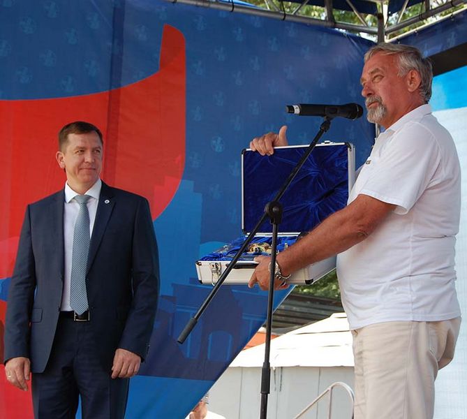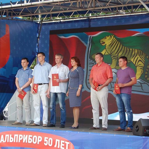 Праздник на заводе «Дальприбор»Раннее утро праздничного июльского дня руководство ПАО "Дальприбор" встретило буднично — на проходной завода. На фоне шаров, подобранных под цвет логотипа предприятия, флагов Российской Федерации, Приморского края, города Владивостока, Союза машиностроителей России, рабочие, инженеры, служащие поздравляли друг друга с 50-летием. Рукопожатия, дружеские объятия — приметы того праздничного утра. Да и погода была словно по заказу — на небе ни облачка, что, без сомнения, прибавило праздничного настроения. Рота девушек-барабанщиц внесла особый колорит в утренний пейзаж. Заводчане и приглашённые гости всё прибывали и прибывали, и вскоре место проведения торжества, где под огромным шатром собрались люди, было заполнено до отказа и, как говорят в таких случаях, яблоку негде было упасть. Генеральный директор Роман Титков успевал везде: и с заводчанами общался, и встречал вип-персон, которых в этот день прибыло на завод немало от разных властных, исполнительных структур и общественных организаций. Тут же, на рабочих площадках, играли в "морской бой", возводили стены дома. Одним словом, несмотря на праздник, трудовой процесс не прекращался. И когда ведущий объявил о начале праздника, началось самое интересное — награждение и поощрение лучших из лучших за трудовые достижения, успехи в общественной жизни и спорте. Торжественную часть праздника открыл генеральный директор завода Роман Владимирович Титков. Он поздравил коллектив завода со знаменательной датой, поблагодарил за добросовестный труд, особо отметив тех, кто отдал заводу многие годы, пожелал здоровья и благополучия работникам, а "Дальприбору" — новых свершений, развития и процветания. Поздравить коллектив завода с юбилеем и вручить благодарности, почетные грамоты и ценные подарки за многолетний добросовестный труд, высокий профессионализм, вклад в развитие города Владивостока и в связи с 50-летием со дня начала производственной деятельности ПАО "Дальприбор" прибыли губернатор Приморского края Владимир Владимирович Миклушевский, председатель Законодательного собрания Приморского края Александр Иванович Ролик, председатель Думы города Владивостока Елена Валерьевна Новицкая, исполняющий обязанности главы города Владивостока Константин Анатольевич Межонов. Руководитель аппарата Приморского регионального отделения ООО "Союз машиностроителей России" Михаил Владимирович Колтович не только поздравил коллектив "Дальприбора" с юбилеем, но и вручил Роману Владимировичу Титкову от имени управляющего директора ПАО ААК "ПРОГРЕСС" Юрия Петровича Денисенко ценный подарок — модель вертолёта, а Владимиру Фёдоровичу Титкову, члену совета директоров, советнику генерального директора завода "Дальприбор" — грамоту, подписанную Первым заместителем Председателя СоюзМаш России Владимиром Владимировичем Гутенёвым, за личный вклад в развитие машиностроительной отрасли. Добрые слова в адрес предприятия сказали заместитель секретаря партии "Единая Россия" Андрей Петрович Брик, председатель Федерации профсоюзов Приморского края Владимир Владимирович Исаков. Теплые слова и искреннюю благодарность выразили за труд представители Тихоокеанского флота России от имени командующего Тихоокеанским флотом Сергея Иосифовича Авакянца, от имени членов в