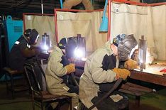 «Лучший сварщик» — конкурс молодыхУспешно возродившаяся традиция проведения конкурсов профессионального мастерства на АО "ДВЗ "Звезда", лидирующем предприятии Приморского регионального отделения Союза машиностроителей России, нашла в трудовом коллективе живой отклик. Количество участников первого в 2017 году смотра-конкурса "Лучший по профессии" в номинации "Лучший сварщик" увеличилось на треть. 16 ребят из двух цехов (10 и 12) приступили к первому этапу состязания — проверке теоретических знаний по дисциплинам "Ручная сварка покрытыми электродами" и "Полуавтоматическая сварка в защитном газе". Выслушав напутствие от председателя организационного комитета, заместителя исполнительного директора — директора по персоналу Михаила Григорьевича Плешко и председателя жюри, директора по производству Юрия Борисовича Зинченко, конкурсанты начали "сражение" с теорией. — На подготовку конкурса ушёл месяц, — рассказал один из организаторов Семён Житников. — БТПП цехов предоставили списки участников, организовали подготовку. Работа велась под контролем руководителей подразделений Андрея Васильевича Шепелева (цех 10) и Николая Андреевича Ужакова (цех 12). Как и в прошлом году, тестовые задания содержали 20 вопросов, на их выполнение отводилось 60 минут. Все нюансы участникам разъяснил технический эксперт конкурса, заместитель главного сварщика Анатолий Степанович Чернухин. Среди конкурсантов — победители и призёры прошлогоднего конкурса: Виктор Татар, Олег Нуждин и Роман Апанасов из цеха 10, Анатолий Зинчук из 12-го. Игорь Исаков также имеет опыт участия в соревнованиях по профессии. Будучи студентом ДВССК, он во время прохождения производственной практики на заводе принял участие в чемпионате WorldSkills. Подготовку и организацию обеспечили специалисты отдела обучения и молодёжной политики 84 и инженер-технолог цеха 12 Елена Андреевна Пенькова. Девять специалистов ручной сварки покрытыми электродами приступили к выполнению практического задания в лаборатории сварки цеха 12. Первый этап — сборка деталей. Качество работ принимал технический эксперт отдела 30 Евгений Витальевич Мозговой, готовую работу оценивала конкурсная комиссия. — По результатам прошлого года усложнили практическое задание, чтобы ребята могли в полной мере раскрыть свой потенциал, показать максимум умения и знаний, — рассказывает технический эксперт, начальник бюро отдела 53 Сергей Максимович Сидорчук. — Ввели потолочное положение сварки, убрали воздушно-дуговую строжку корня шва, вместо этого сделали механическую выборку — усложняющий элемент, требующий более качественной проварки, а значит, и квалификации сварщика. Задание конкурса схоже с тем, что ребятам приходится выполнять при аттестации. Группу сварщиков полуавтоматической сварки при выполнении практического задания разбили на две части. — Методика оценки и образцы остались прежними, — поясняет Анатолий Степанович Чернухин. — Конкурсное задание выполняется в два этапа. Некоторое преимущество в этой номинации есть у работников цеха 12, которые имеют богатый практический опыт, ведь большинство сварочных работ на БКП выполняется полуавтоматами. В то время как в 10 цехе чаще практикуется ручная сварка. И вот подведены итоги конкурса. В торжественной обстановке победители и призёры получили заслуженн