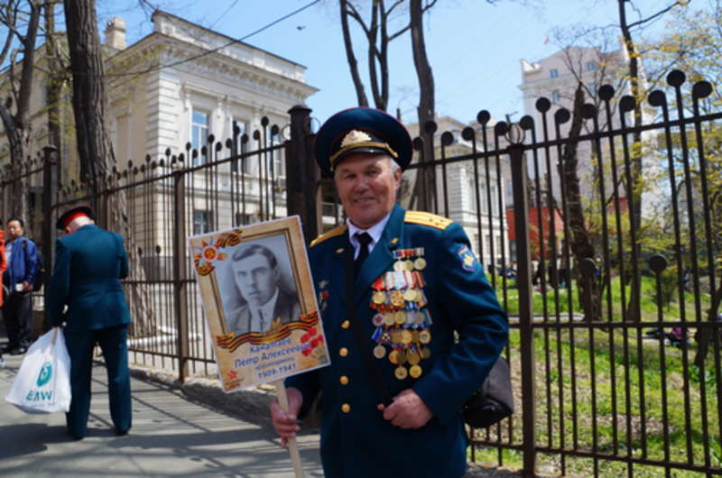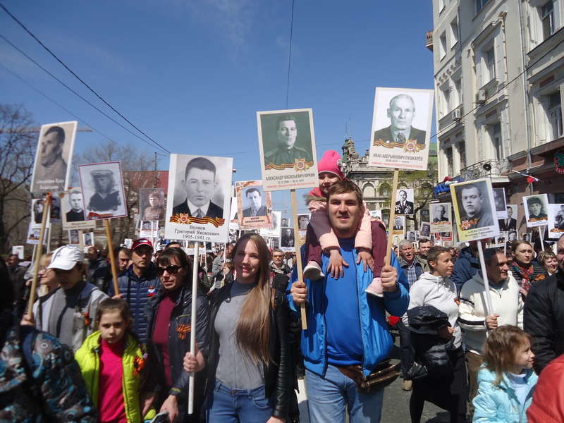 Пропал без вести…"Это наши прадеды, – говорит Георгий Косенко. Он пришел почтить память предков вместе с женой Ольгой и пятилетней дочерью Таисией. Мы с дочкой несем портреты прадеда жены, она – моего прадеда. Мой прадед, Григорий Яковлевич Волков, воевал на Западном фронте, он прошел сначала Советско-финскую войну, в 41-м пропал в бою, к сожалению, о нем нет никаких данных. Александр Васильевич Юркин был ветеринаром, лечил лошадей, собак, ведь они тоже воевали в этой страшной войне. (Об участии в Великой Отечественной войне животных, в том числе на финском направлении – лосей, редакция газеты Приморского регионального отделения Союза машиностроителей России писала в 2015 году.) Также он проверял продовольствие. Был коммунистом, идейным. Иван Аверьянович Пушкарёв – брат прабабушки жены, о котором известно только, что он прошел войну и вернулся живым". Евгений Петрович Канатаев, полковник в отставке, прослуживший 32 года, – также, как и Эдуард Александрович Костицын, ребенок войны. "Мой отец, Петр Алексеевич Канатаев 1909 года рождения, погиб на фронте, – говорит Евгений Петрович. К огромному сожалению, я не знаю, где он пропал, где похоронен, всю жизнь ищу. Я ищу, внуки и правнуки ищут. В 41-м году из-под Великих Лук пришло известие, что он пропал без вести. В архивах ничего не сохранилось. Шли люди на фронт, а приказы не успевали издавать, личных номеров не было. Я ежегодно хожу в составе "Бессмертного полка" с портретом отца. Праздник 9 мая я считаю лучшим праздником в Российской Федерации. С праздником, с Днем Победы!". «Прогресс Приморья», № 18 (480) от 11.05.2018 г. |