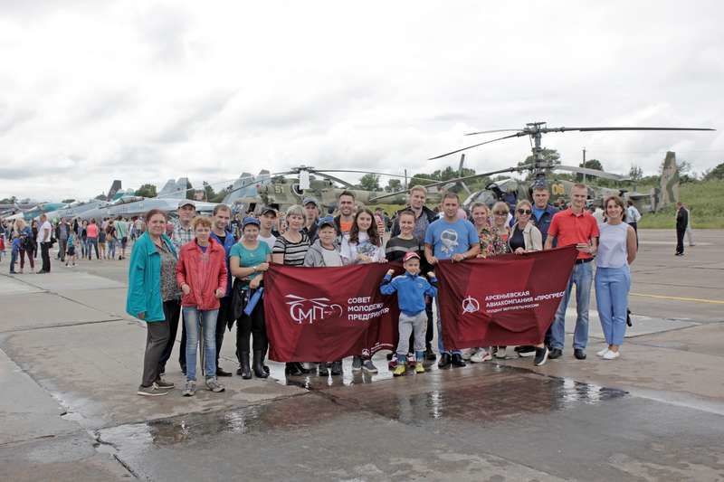 Сотрудники «Прогресса» посетили форум «Армия – 2018» Восточного военного округаСотрудники Арсеньевской авиационной компании "Прогресс" им. Н. И. Сазыкина, лидирующего предприятия Приморского регионального отделения Союза машиностроителей России, посетили одну из шести площадок международного военно-технического форума "Армия‑2018" Восточного военного округа, который проходил во Владивостоке. Группа активистов Совета Молодёжи предприятия и более опытных, но не менее активных авиастроителей ранним утром 25 августа прибыла на аэродром "Центральная Угловая", где были выставлены образцы авиационной техники Морской авиации ВМФ, самолёты и вертолёты армии ВВС и ПВО Восточного военного округа и авиации ДОСААФ. Инициатором данной поездки выступила менеджер отдела материально-технического снабжения Оксана Дьяченко – активный член Совета молодёжи предприятия. Она обратилась с предложением об организации совместного выезда авиастроителей на аэродром к руководителю пресс-службы Юлии Бушуевой, которая с большим энтузиазмом восприняла эту идею, ведь она уже давно самостоятельно планировала отправиться на данное мероприятие, а проводить время вместе с коллегами всегда интереснее. Юлия начала комплектовать группу активистов, а тем временем председатель Совета молодёжи предприятия Валентина Тищенко подготовила необходимые документы на организацию автотранспорта. Начальник транспортного цеха Александр Анатольевич Часов предоставил комфортабельный автобус для 20 записавшихся на поездку авиастроителей. Другие же заводчане с семьями и детьми отправились на форум самостоятельно и присоединились к коллегам уже на площадке. Не смог не воспользоваться возможностью посмотреть на авиационную технику и водитель автобуса Евгений Шаповалов, который вместе со всеми с большим интересом отправился на осмотр территории. На аэродроме взору гостей были представлены современные истребители Су‑35С, Су‑30М2, высотный истребитель-перехватчик МиГ‑31БМ, многофункциональный фронтовой истребитель-бомбардировщик Су‑34, противолодочный самолёт ИЛ‑38Н, вертолёты Ка‑52 "Аллигатор", Ми‑8АМТШ и корабельный транспортно-боевой вертолёт Ка‑29. На аэродроме также были выставлены пусковые установки комплекса ПВО С‑400 "Триумф" и новейшие радиолокационные комплексы, образцы пусковых установок объектового ПВО. Всего на площадке были представлены порядка 30 единиц – самолётов, вертолётов, боевых машин и аэродромной спецтехники. Примечательно, что посетителям было разрешено не только фотографировать, но и посидеть в кабинах некоторых самолётов и вертолётов. Правда, очереди для получения памятных фото в кабине собрались достаточно большие – несмотря на циклон, который принёс в регион ураганный ветер и проливной дождь, гостей на площадке было очень много. Кроме того, в рамках выставки у всех желающих была возможность пообщаться с военными лётчиками, авиационными техниками, примерить лётное обмундирование, а также пройти психологические тесты. Но, конечно, главным и самым интересным экспонатом для сотрудников "Прогресса" стал вертолёт Ка‑52 "Аллигатор". Заводчане с удовольствием посидели в кабине собранного когда-то на предприятии вертолета, который сегодня стоит на страже нашей Родины, что не может не вызывать гордость в сердцах арсеньевских авиас