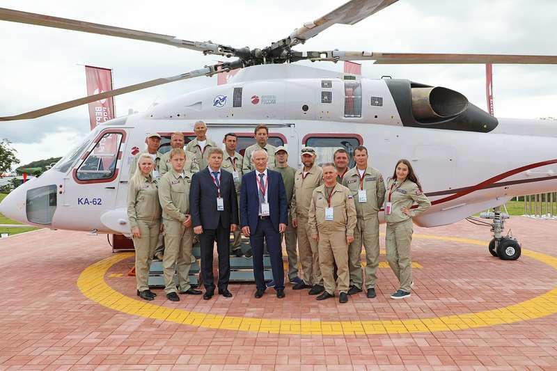 Вертолёт Ка-62 приземлился на ВЭФ-2018В рамках выставки "Улица Дальнего Востока", проходившей в период проведения IV Восточного экономического форума на территории кампуса ДВФУ, российской и зарубежной аудитории был представлен лётный образец новейшего гражданского многоцелевого вертолёта Ка‑62, изготовленный в Арсеньевской авиационной компании "Прогресс" им. Н. И. Сазыкина, которая является лидером Приморского регионального отделения Союза машиностроителей России. Стоит отметить, что это было уже второе представление вертолёта Ка‑62 на Восточном экономическом форуме. Однако в этом году вертолёт перелетел на выставку самостоятельно, что ознаменовало новый этап в ходе проведения его испытаний, и о чём подробнее мы уже писали в прошлом выпуске газеты "Прогресс Приморья". В связи со столь важным событием в истории развития проекта Ка‑62 генеральный директор холдинга "Вертолёты России" Андрей Богинский в первый же день проведения форума лично поздравил лётный и инженерно-технический состав АО "Камов". Ведущий лётчик-испытатель Александр Чередниченко и ведущий штурман-испытатель Александр Ощепков получили брендированные наручные часы из рук главы холдинга, крепкие рукопожатия и поздравления с успешным переходом вертолёта на новый этап испытаний. Также Андрей Богинский вручил памятные сувениры авиатехнику лётно-испытательного комплекса Андрею Гильмидинову и начальнику службы эксплуатации авиационного оборудования Денису Ахапкину. "От лица холдинга "Вертолёты России" и от себя лично я хочу поздравить вас с этим знаменательным событием. Первый перелёт – это большое событие, как для разработчиков, так и для производителей. Совместными усилиями вы сумели вывести вертолёт Ка‑62 на новый этап испытаний. Но впереди у нас с вами ещё более ответственная задача – приступить к сертификационным испытаниям и получить сертификат. Уверен, намеченные планы мы сумеем реализовать не менее успешно", – поздравил коллектив Андрей Богинский. Затем глава холдинга осмотрел лётную машину, оформление салона и провёл небольшое совещание с Александром Чередниченко прямо в кабине вертолёта. Его интересовали вопросы, связанные с поведением машины в ходе полёта, её сильные стороны и необходимость выполнения тех или иных доработок, а также мнение пилота о выпуске различных модификаций данной машины. Однако приземления вертолёта для успешной демонстрации было бы недостаточно без серьезной предварительной подготовки и оформления площадки. Организационные вопросы статического представления вертолёта на Восточном экономическом форуме вновь легли на плечи заместителя начальника отдела внешнеэкономической деятельности Виктора Аладина, который был назначен ответственным за группу, а также начальника бюро выставочной деятельности Павла Верхоленцева и начальника службы протокола Капитолины Дурбайловой. Вместе с руководителем пресс-службы предприятия Юлией Бушуевой, лётным и инженерно-техническим составом АО "Камов" с девяти утра и до восьми вечера они также работали на стенде Ка‑62: рассказывали всем желающим о новейшем многоцелевом вертолёте, его технических характеристиках, особенностях и преимуществах, целевом назначении и многом другом. В числе экскурсоводов выступил и главный конструктор Ка‑62 из АО "Камов" Андрей Аслямов. Нелёгк