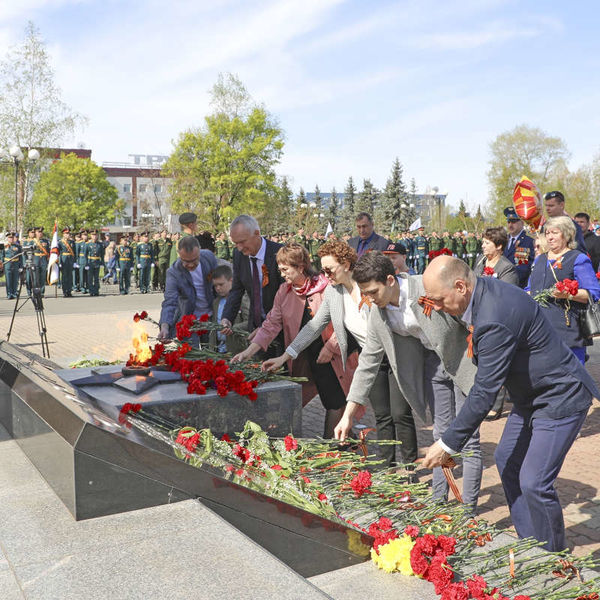 Сотрудники «Прогресса» отдали дань памяти подвигу ветеранов Великой Отечественной войныТрудовой коллектив Арсеньевской авиационной компании "Прогресс" им. Н. И. Сазыкина во главе с управляющим директором Юрием Петровичем Денисенко принял участие в торжественном возложении цветов и венков к "Обелиску памяти жителям города Арсеньева, погибшим на фронтах Великой Отечественной войны 1941–1945 годов" на площади Славы. Всего в этот день на площади Славы собрались более трех тысяч авиастроителей и членов их семей. В рамках акции "Георгиевская ленточка" члены молодежной профсоюзной комиссии и Совета молодёжи предприятия раздавали всем пришедшим на мероприятие работникам Георгиевские ленточки и цветы. Некоторые из сотрудников авиакомпании "Прогресс" влились в колонну предприятия с портретами своих героических предков в руках. Присоединился к авиастроителям и доблестный коллектив 2230 ВП МО РФ. В этот же день на улице Калининской состоялось шествие "Бессмертного полка". Тысячи жителей с портретами родственников-фронтовиков прошли путь к обелиску Славы. Сопровождали участников шествия волонтеры акции. "Бессмертный полк" – это шествие победителей. Пусть сами воины уже не могут пройти торжественным парадом, но они незримо идут рядом со своими потомками – наследниками Победы. "Бессмертный полк" – это еще и народная летопись. Это возможность человека зафиксировать свою личную память, оставив в своем семейном архиве данные о ветеране своей семьи. Порой бывает так, что имя, фамилия, отчество, год призыва или смерти – это всё, что известно. Но если не сохранить и эти крупицы памяти, то через какое-то время не будет и их. Места на трибунах возле обелиска Славы заняли Почётные граждане города, ветераны, гости. Рядом с обелиском выстроились военнослужащие воинских частей. В течение часа жители Арсеньева – представители трудовых коллективов, общественных организаций, политических партий, военнослужащие, священнослужители, учащиеся, студенты возлагали цветы к обелиску Славы. По окончании церемонии состоялся митинг-реквием, в ходе которого с поздравительной речью к присутствующим обратились врио главы Арсеньевского городского округа Владимир Сергеевич Пивень, председатель Думы АГО Анатолий Михайлович Щербаков, Председатель городского Совета ветеранов войны, труда, Вооруженных Сил и правоохранительных органов, Почётный гражданин города Василий Андреевич Клоков, управляющий директор ПАО ААК "ПРОГРЕСС", председатель Приморского регионального отделения Союза машиностроителей России Юрий Петрович Денисенко, епископ Арсеньевский и Дальнегорский Гурий, командир войсковой части 64845, полковник Геннадий Владимирович Фурса. "Добрый день, дорогие ветераны Великой Отечественной войны и труженики тыла, уважаемые арсеньевцы и гости города! Сегодня мы отмечаем самый народный и самый светлый праздник памяти нашей страны – День Победы. Это день великой радости и одновременно великой скорби по тем, кто отдал свою жизнь во имя свободы и будущего нынешних поколений. В День Победы мы прикасаемся к обжигающей правде войны и понимаем, что на самом деле значит любить свою Родину. Святой долг каждого Российского гражданина – хранить память об этом великом подвиге, чтить его как историю доблести, высокого патриотизма и силы духа. Именно поэтому мы не 