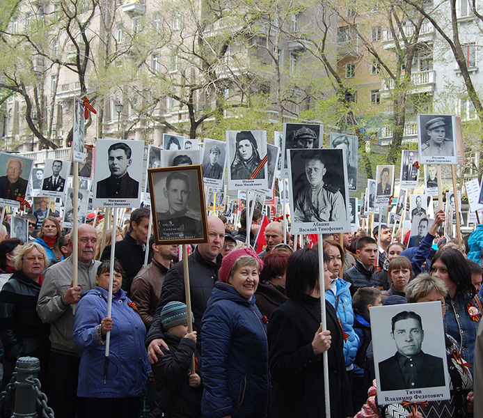 Бессмертный полк пройдёт по улицам Владивостока9 мая 2016 года состоится традиционное шествие горожан "Бессмертный полк". Этот проект является всероссийским, Владивосток присоединится к акции в четвертый раз. Для участия в шествии необходимо прийти 9 мая с фотографией (формат А3 на штендере) своего родственника, который участвовал в Великой Отечественной войне, но не дожил до 71-й годовщины Победы. После окончания парада войск и военной техники колонна "Бессмертного полка" пройдет по улице Светланской. Уже сейчас на сайте "Бессмертного полка" можно опубликовать фото и историю своего родственника — участника Великой Отечественной войны (в разделе "Дислокация полка" нужно найти Приморский край — Владивосток — раздел "Запиши деда в полк"). Кроме того, позднее на сайте появится информация о месте и времени построения участников шествия. Заказать фотографию (сканирование, печать и ламинирование формата А3) можно в фотосалоне "Сервис Плюс" (ул. Алеутская, 45а, вход со стороны ул. Фонтанной, время работы с 10 до 19 часов, телефон 222-18-63). Cканирование, обработка и печать фотографий формата А3 для участников шествия "Бессмертный полк" производится бесплатно с 1 по 25 апреля 2016 года, стоимость ламинирования фотопортрета формата А3 необходимо уточнить в фотосалоне. Там же можно приобрести штендер для фотопортрета (высота 1 метр), стоимость которого также можно уточнить на месте. Штендер высотой 1 метр для изготовленного фотопортрета размера А3 можно приобрести с 1 по 25 апреля в рекламно-производственной компании по адресу ул. Краева, 8а, офис 207 (остановка "Детский парк", административно-офисное здание с большими буквами "СССР", время работы с 10 до 19 часов, выходные дни: суббота, воскресенье, задать вопросы по изготовлению и стоимости можно по телефону 8-908-457-54-34). Большое количество штендеров изготавливается по предварительной заявке. Телефон для организаций и учреждений: 291-49-75. Штендеры и фотографии можно будет изготовить также до 5 мая в ТЦ "Луговая" по адресу ул. Луговая, 21а, павильон 24 (трамвайная остановка "Луговая") ежедневно с 10 до 19 часов (телефон: 295-75-05, электронная почта 2957505@bk.ru, WhatsApp +79089957505) и в павильоне "Подарки" по адресу ул.Юмашева, 6а, (трамвайная остановка "Баляева") ежедневно с 11 до 19 часов (телефон:+79841931330, электронная почта 2957505@bk.ru, WhatsApp +79089957505). Участникам шествия "Бессмертный полк" эти предприятия оказывают следующие услуги: 1. фотопечать на пластике — стоимость уточнять по указанным телефонам; сканирование и обработка (ретушь) фотографии производится бесплатно; участнику шествия выдается готовый штендер с размещением фотопортрета формата А3; 2. печать фотографии на фотобумаге и ламинация — стоимость уточнять по указанным телефонам; сканирование и обработка (ретушь) фотографии производится бесплатно; участнику шествия выдается готовый штендер для размещения фотопортрета формата А3; 3. возможность отдельно заказать сканирование и обработку (ретушь) фотографии; стоимость печати фотопортрета уточнять по указанным телефонам. Можно также отдельно приобрести штендер под готовый фотопортрет. Напоминаем, что опубликовать фотографии и историю своего солдата Великой Отечественной можно на сайте "Бессмертного полка". Рассказывая о ветеране, о дорогом для вас человеке, не ограничивайтесь сухими строчками биографии. Запишите свои личные воспомина