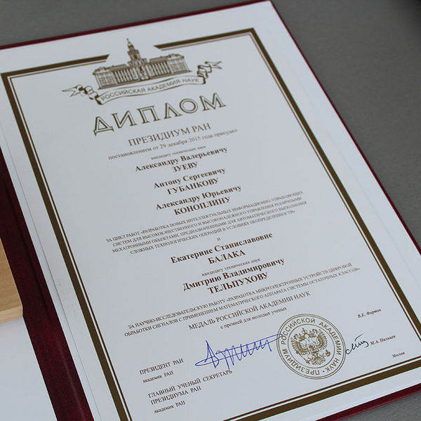 Учёные Инженерной школы награждены медалями и премиямиРоссийская академия наук (РАН) наградила молодых учёных Инженерной школы ДВФУ медалями и премиями за выдающиеся разработки в области автоматизации и управления. Преподавателям Инженерной школы ДВФУ в торжественной обстановке вручены дипломы и медали РАН и денежные премии в размере 50 тысяч рублей. Российская академия наук ежегодно проводит конкурс для молодых исследователей, чтобы найти и поддержать перспективных студентов и преподавателей, содействовать их профессиональному росту, поощрить творческую активность в проведении научных работ. Научные работы молодых ученых принимаются к рассмотрению после их опубликования. Причем материалы по разработке или созданию приборов для научных исследований, методик и технологий могут быть выдвинуты на конкурс до их практического завершения. За лучшие научные труды утверждены 19 медалей с премиями в размере 50000 рублей молодым ученым и 19 медалей с премиями в размере 25000 рублей каждая студентам высших учебных заведений России. Награда является результатом выполнения комплексной работы, которая проводится коллективом кафедры автоматизации и управления Инженерной школы ДВФУ в рамках федеральной целевой программы, программ Российского фонда фундаментальных исследований, Российского научного фонда. Она посвящена созданию систем управления динамическими объектами — манипуляторами, роботами и другими техническими средствами, которые могут работать в условиях неопределенности и переменности окружающей среды. Командой профессионалов получен не просто технический материал, а проект, который имеет практическую значимость и востребован нашей промышленностью. В этом году на конкурс РАН было представлено около 850 работ более чем от тысячи соискателей. «Прогресс Приморья», № 24 (388) от 14.07.2016 г. |