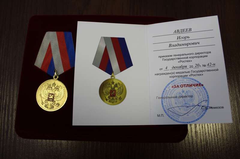 Медаль Госкорпорации РостехРуководитель представительства Госкорпорации Ростех в Приморском крае Александр Полусмак встретился во Владивостоке с коллективом Акционерного общества "РТ-Охрана" (Приморский филиал). Он вручил от имени руководителя Госкорпорации Ростех, председателя Союза машиностроителей России Сергея Чемезова медаль "За отличие" директору предприятия СИБЕР "РТ-Охрана" Игорю Авдееву и поздравил сотрудников охранного предприятия с Новым 2021 годом. «Прогресс Приморья», № 1 (607) от 15.01.2021 г. |