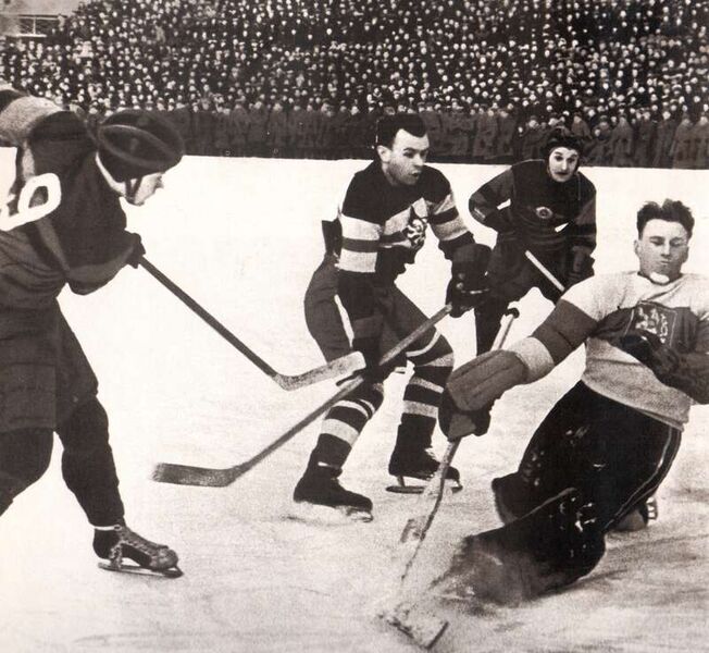 «Великолепная пятёрка и вратарь…»Продолжение. Начало в № 10 В конце сороковых годов хоккейные ворота московского "Динамо" защищал сам Лев Яшин, будущий лучший футбольный вратарь мира. Конкуренцию динамовцам составлял московский "Спартак" образца 1948 года. За спартаковцев играли: З. Зикмунд, В. Исаев, А. Сеглин, Ю. Тарсов, Б. Соколов, И. Новиков. Хоккеисты ЦДКА – чемпионы Советского Союза 1948 года. Победители играли в таком составе: В. Никаноров, Г. Мкртычян, М. Орехов, Е. Бабич, А. Тарасов, В. Бобров, В. Веневцев. Анатолий Тарасов стал в дальнейшем большим, известным далеко за пределами страны тренером сборной СССР. Конкурировала с армейцами очень хорошая команда Военно-воздушных сил (ВВС), у которой была короткая, но славная история. ВВС награждалась кубком. Курировал команду Василий Сталин. К сожалению, хоккейный коллектив, отправившись на очередной матч самолётом, не вернулся назад. Произошла авиакатастрофа, и команды не стало… В 1975 году 83-й по счёту канадец, выступая перед специально созданной комиссией, выяснявшей, когда и при каких обстоятельствах родился главный национальный вид спорта – хоккей с шайбой, рассказывал, что в 1837 году его дед участвовал в какой-то игре на льду. Эти воспоминания больше похожи на легенду, но всё же те "раскопки" кое-что прояснили. В 1866 году между гарнизонными командами Галифакса и Кингстона состоялась первая встреча, вероятно, по хоккею. Если учесть, что в том матче в каждой команде играли по 20 человек и встреча продолжалась ни много ни мало шесть часов двадцать минут, то с натяжкой можно назвать эту игру хоккеем с шайбой. Названия команды-победительницы никто не зафиксировал, и после того первого матча канадские королевские стрелки стали считаться первооткрывателями хоккея с шайбой. Ну а дальше, как говорится, больше. В 1879 году был выработан хоккейный кодекс. Следующий шаг – учреждение Кубка Стэнли, первый розыгрыш которого состоялся в 1893 году. С 1894 года хоккей стал профессиональным, то есть хоккеистам начислялись за игры деньги. Профессионалы выступали внутри страны, лишь в 1920 году, когда в России шла война с международной интервенцией и внутренней контрреволюцией, канадцы выехали за океан и вернулись на родину олимпийскими чемпионами. В 1924 году канадцы снова пересекли океан для участия в I Белой олимпиаде в Шамони. Представители Старого Света, как говорится, восьмой год варились в собственном соку, разыгрывая чемпионат Европы. Россия в то время только-только налаживала послевоенную жизнь, и главной игрой, которая собирала стадионы, был, естественно, футбол. Без наших Европа была лишена иллюзий противостоять родоначальникам хоккея, и удар был нокаутирующий. Судите сами: за три периода по 15 минут (таким был тогда регламент) чемпионы Европы 1923 года – шведские хоккеисты – пропустили 22, чехословацкие – 30, а хоккеисты швейцарской сборной – 33 шайбы в свои ворота. Тогда Европа потерпела поражение со счётом 0:85… Такое соотношение сил сохранялось долго, пока на международной арене не появилась сборная СССР. Впрочем, такие разгромные счета вашему покорному слуге доводилось фиксировать в школьные годы в дворовом хоккее 1960-70-х годов. Помнится, в субботние и воскресные дни мы играли до сумерек, когда разглядеть шайбу уже было невозможно. Ворота поражали "на ощупь". И когда счёт приближался к цифре 50, мы нехотя расх